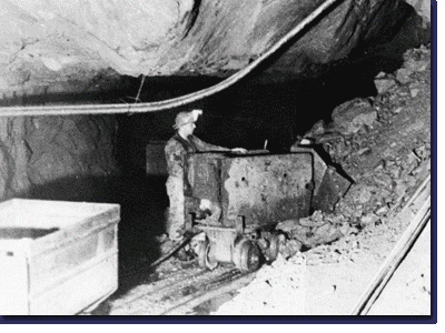 Underground mining was by mucking machines and rail haulage.